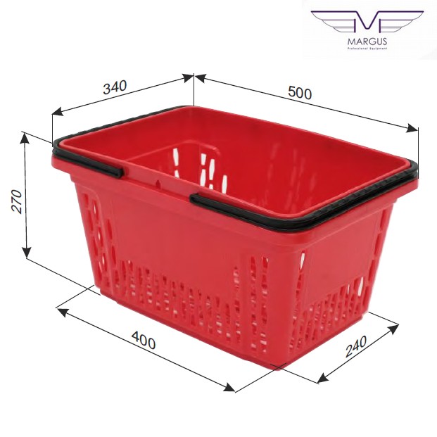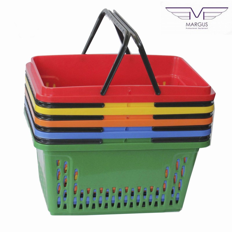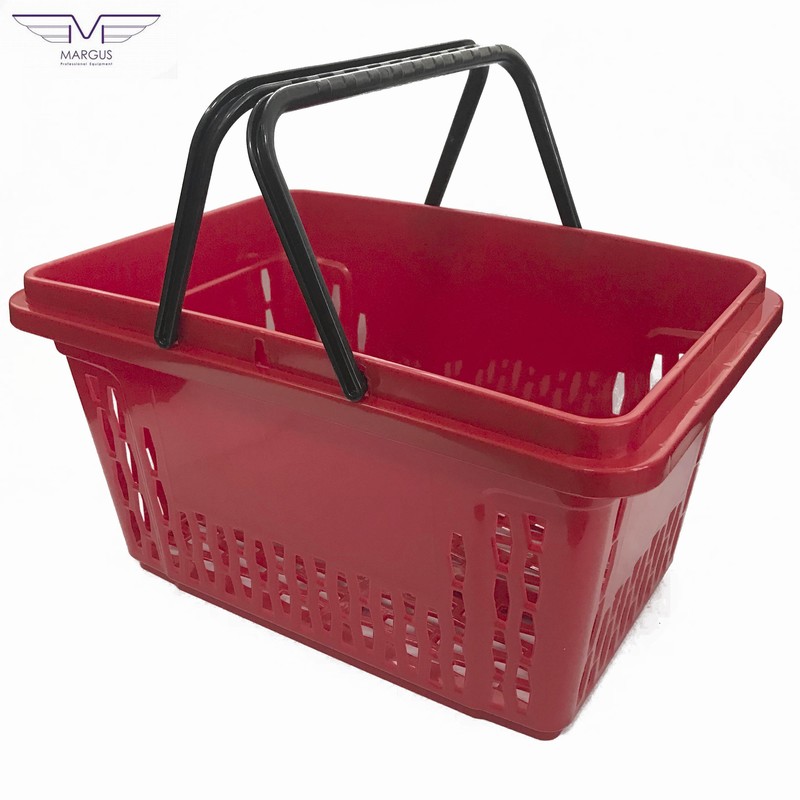 Корзины для супермаркета (корзины для магазина) - применяется в том случае, когда проходы магазина не позволяют применять тележки на колесах. Корзина для супермаркета имеет объем в основном от 20 до 28 литров. Корзинки большего объема не имеют смысла, так как их уже не очень удобно носить и они доставляют неудобство покупателю. Так же необходимо иметь хорошую физическую форму, чтоб полную корзинку поставить на ленто приемник кассового бокса. После 30 литров мы предлагаем рассмотреть покупательские корзинки на колесах.