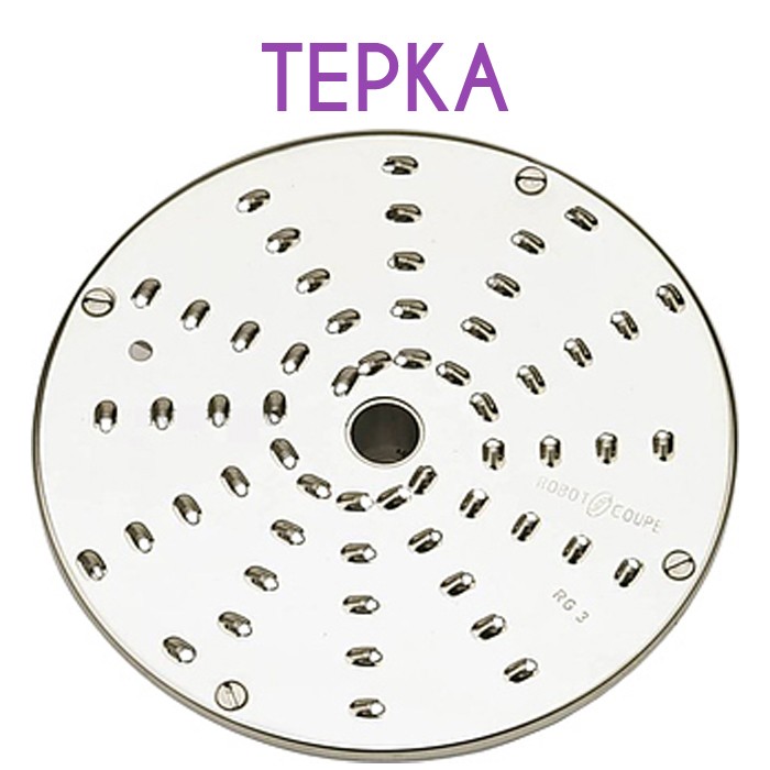 Диск-терка Robot Coupe CL52 використовується для натирання і шинкування овочів і фруктів і подальшого використання їх в якості інгредієнтів для приготування супів, салатів, гарнірів тощо. На підприємствах громадського харчування і торгівлі. Виріб виконаний з алюмінію. Товщина нарізки: 1,5 мм, 2 мм, 3 мм, 4 мм, 5 мм, 9 мм