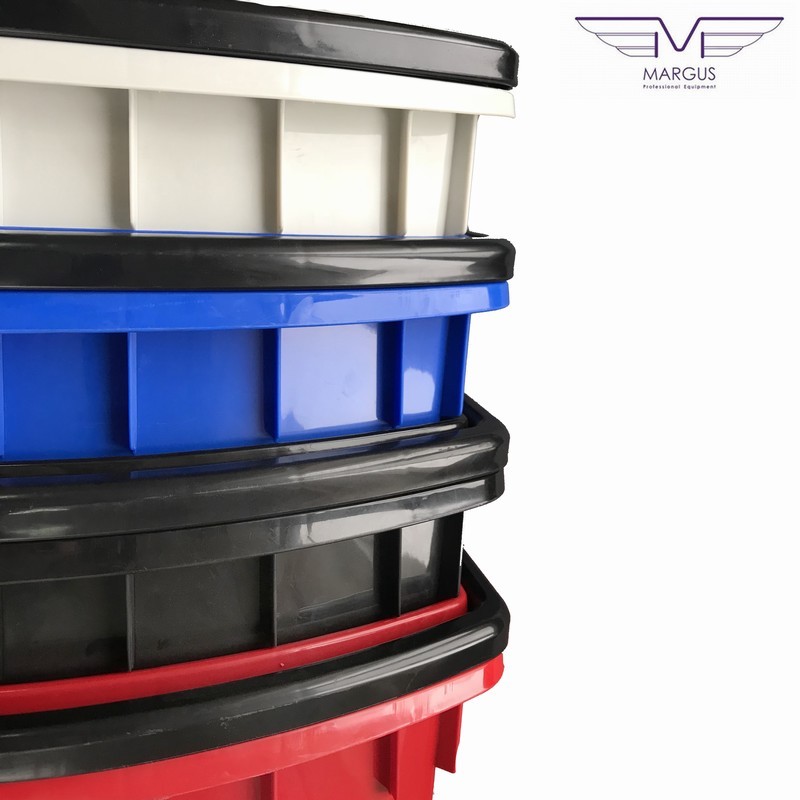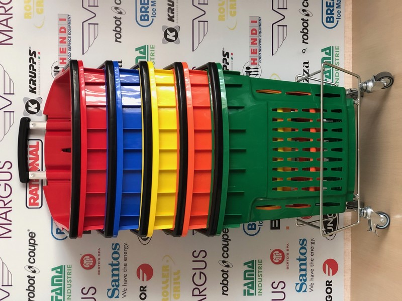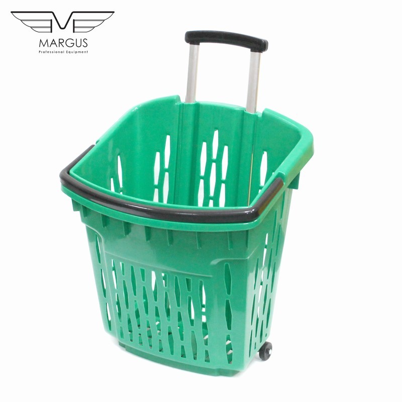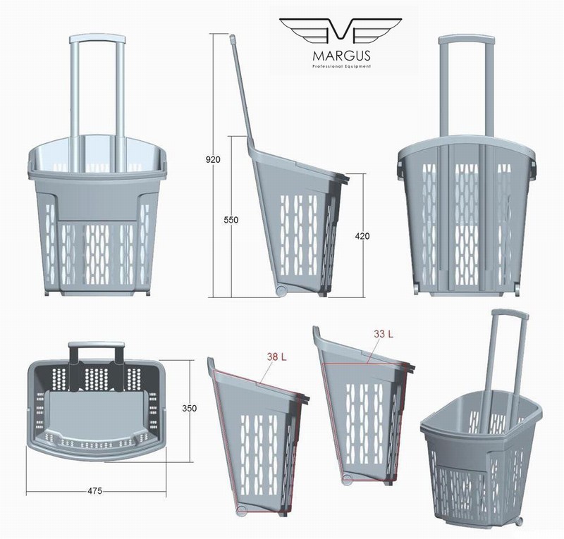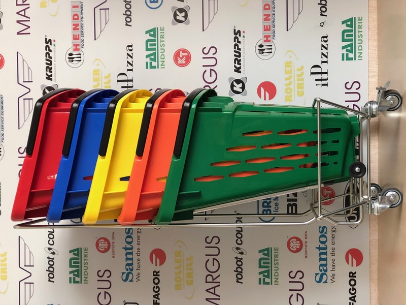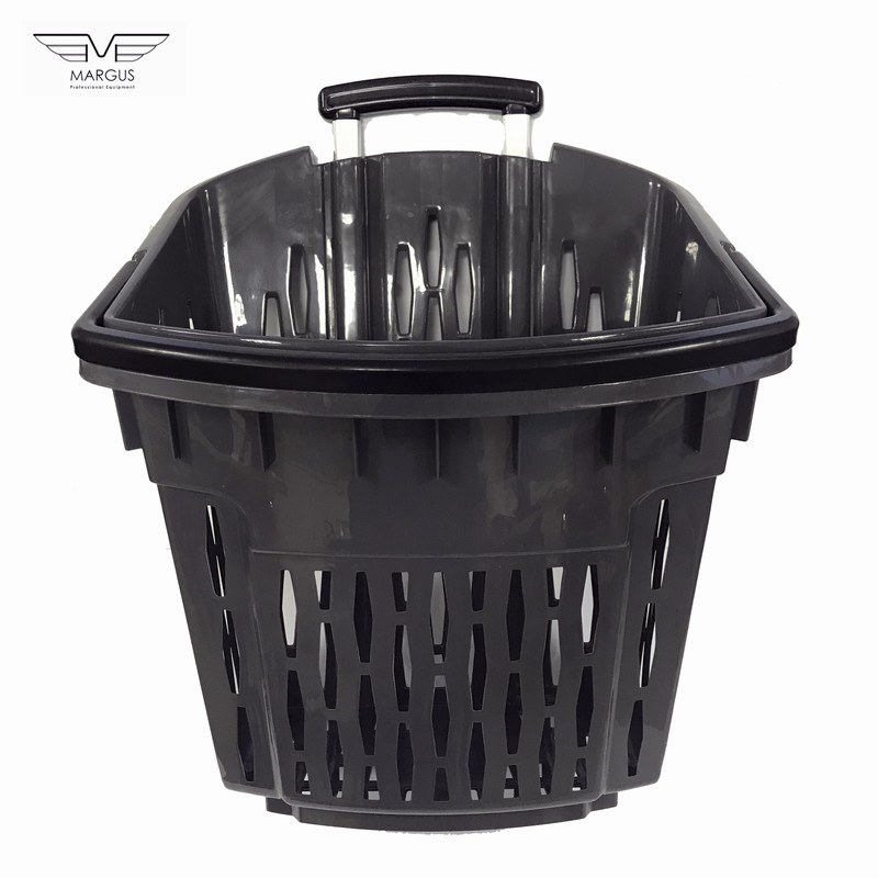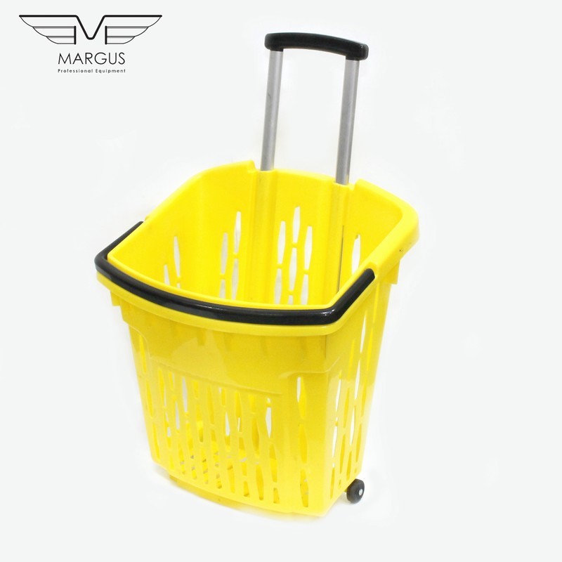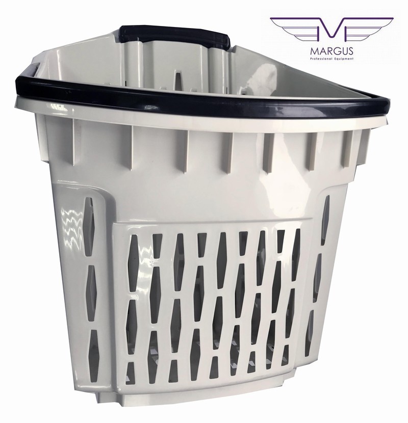 Пластикова корзина на колесах має високу якість і естетику. Кошик для покупця на коліщатках доступна до замовлення в наступних кольорах: червоний, синій, жовтий, зелений (на вимогу можливістю виробництва в кожному кольорі палітри кольорів RAL). Кошик з пластику з колесами має 2 ручки, пофарбованих в стандартний чорний колір. Для кошика на колесах із пластику є можливість замовлення ручки в будь-який колір. Алюмінієві профілі в кошику із пластику для покупців відповідно до EN 755-9 DIN. Матеріал пластикової кошики антистатичний, схвалений для контакту з їжею. Пластикова корзина на колесах має гарну ударною міцністю і жорсткістю. Ганантійних термін - 12 місячний період (гарантія не поширюється на механічні пошкодження).