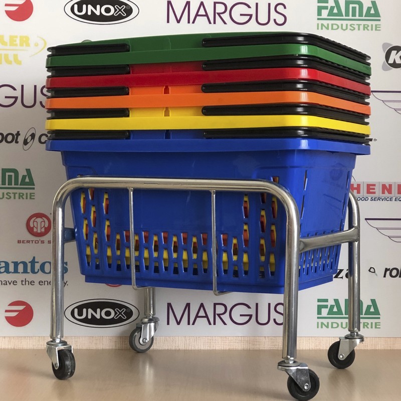 Кошики для супермаркету (кошика для магазину) - застосовується в тому випадку, коли проходи магазину не дозволяють застосовувати візки на колесах. Кошик для супермаркету має обсяг в основному від 20 до 28 літрів. Кошики більшого обсягу не мають сенсу, так як їх вже не дуже зручно носити і вони доставляють незручність покупцеві. Так само необхідно мати хорошу фізичну форму, щоб повну кошик поставити на ленто приймач касових боксів. Після 30 літрів ми пропонуємо розглянути купівельні кошики на колесах.
