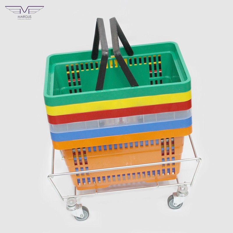 Компанія «Мargus» пропонує Вашій увазі підставки під кошики купівельні для магазинів і супермаркетів. Навіщо потрібні підставки металеві для купівельних кошиків? Кошики для супермаркетів мають можливість штабелювання, а значить, зберігання такого обладнання дуже зручне не займає простір торгового залу. Кошики розташовані на підставці набагато зручніше брати покупцям, зручно персоналу переміщати по торговому залу. Підставки для кошиків іноді називають - мобільні підставки-накопичувачі. Така підставка оснащена колесами і зручними кріпленнями для купівельних кошиків, місце їх розташування в при касовій зоні, а також зоні входу з магазину чи супермаркету. На сьогоднішній день ще не придумано кращого місця зберігання для купівельних кошиків. Скільки підставок необхідно для магазину? Найбільш гармонійно і зручно для покупців від 15 до 25 кошиків на одній підставці. При вході бажано мінімум дві підставки і біля кожної каси по одній. Покупці буде машинально після використання складати кошики на підставки. Коли підставка заповнюється кошиками, персонал її перекочує на вхід магазину і так весь час. Якщо Ви заощадили на покупці підставок для кошиків, вони будуть розкидані по всьому магазину, і персонал буде витрачати зайвий робочий час, щоб збирати купівельні кошики. Яка кількість купівельних кошиків необхідно мати для магазину? Рівно стільки, скільки максимально буває покупців у вашому магазині. Кількість візків + кількість кошиків = максимальну кількість покупців.