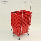 Чому необхідно купувати підставку на колесах для кошиків? Покупець охочіше возтмет кошик з підставки, ніж з підлоги. І так само швидше за все поставить на підставку біля каси, після того як товари виставлені на касовий бокс. Максимальна висота складування кошиків рекомендується не перевищувати 1 метр, щоб уникнути перекидання і псування кошиків. Підставка з ручкою на колесах, зручно переміщати кошики по торговому залу, при переміщенні кошиків від каси на вхід магазину, наприклад при вологого прибирання магазину чи супермаркету.