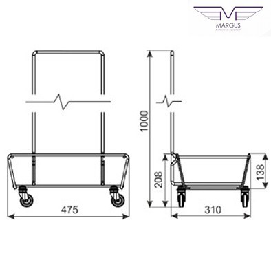 • Підставка для кошиків купівельних, модель Р3 на колесах і з ручкою